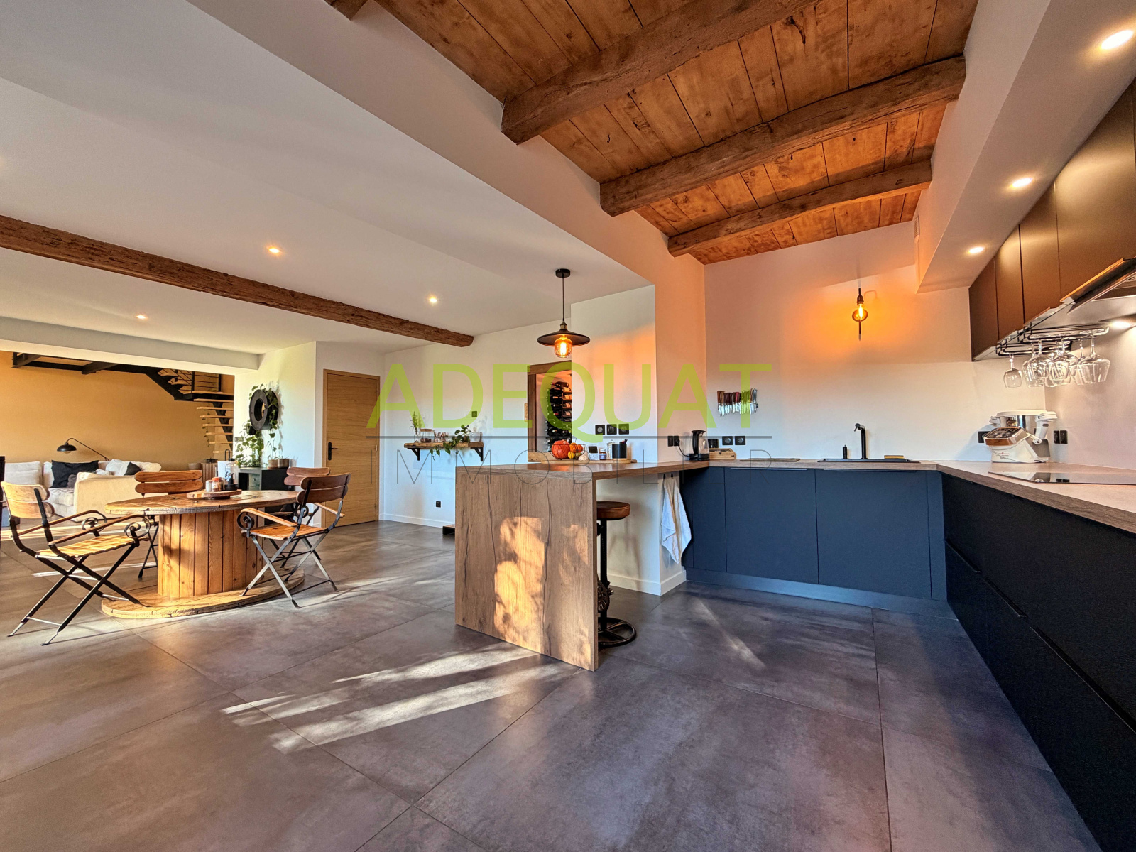 Imaginez-vous dans une pièce de vie de 70 m² , inondée de lumière, où chaque coin respire l'élégance et le bon goût. La cuisine spacieuse et fonctionnelle s’ouvre sur un séjour parfait pour accueillir de grandes tablées. Ajouté à cela, un salon chaleureux avec poêle à bois et grand baie vitrée idéal pour la détente.