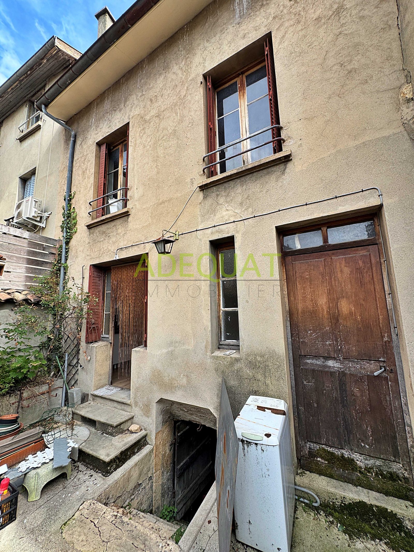 BOURGOIN JALLIEU hyper centre secteur Champ de Mars - Appartement traversant Est/ouest situé au RDC d'une maison de ville divisée en 2 lots avec cave et extérieur. D'une superficie de 58m² env il comporte 2 pièces dont 1 avec vitrine et une 2ème entrée indépendante, 1 salle d'eau/wc. Une grande cave voutée et une cour exposée Ouest complètent ce bien. Vendu en plateau à rénover avec compteurs électrique et eau indépendants, il offre un beau potentiel de réaménagement pour de l'investissement locatif ou activité libérale. Rue calme en sens unique, stationnement à proximité, commerces, écoles jardin de ville et gare sncf à pied.